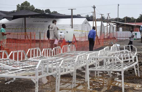 Bed frames are laid out to be used at a newly built MSF, 'Doctors Without Borders', Ebola treatment center in the city of Monrovia, Liberia. (AFP)