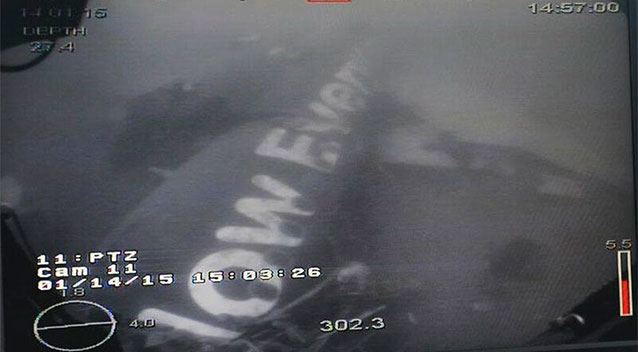 On the photos accompanying the post, taken by the ship's remotely operated vehicle, the words "now" and "everyone" are visible, apparently from Air Asia's motto "Now Everyone Can Fly" painted on the plane's exterior.