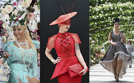 A Fashions on the Field contestant is seen before the running of the Melbourne Cup. (AP)
