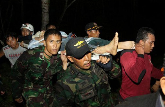 Rescue team evacuate Dian Rimba Rudiansyamar, a survivor of a helicopter crash at Dua Sudara mountain in Bitung, North Sulawesi. Nine people, including Australian and South African nationals, were killed when a helicopter flying to a Newcrest mine in Indonesia crashed, the company said on Thursday. (AFP)