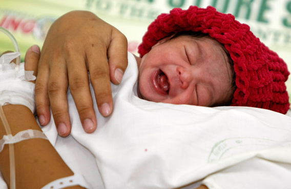 Weighing 2.5 kilos (5.5 pounds), Danica May Camacho was delivered just before midnight Sunday amid an explosion of media flash bulbs in the delivery room at Manila's Jose Fabella Memorial Hospital.
