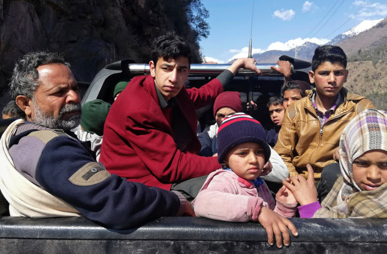 Pakistani Kashmiris flee the town of Chakoti which is about 3 miles, 5 km, from the Pakistan Indian border, following the intense exchange of fire between Pakistan and India, at the Line of Control in Pakistani Kashmir. (AP)