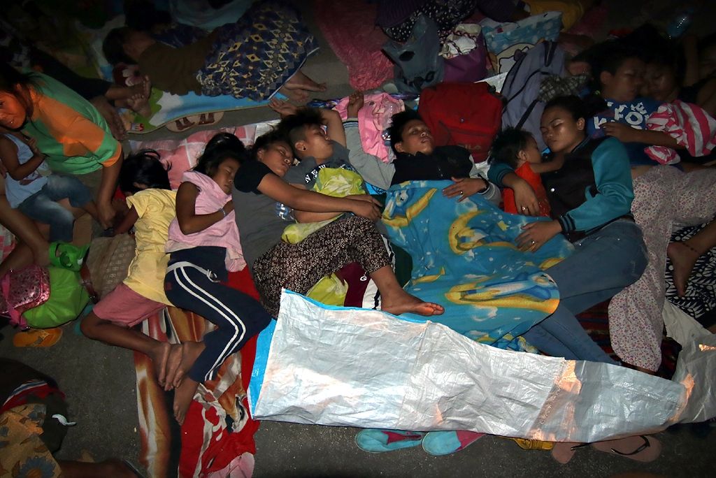 People who had fled their damaged homes wrapped themselves in blankets and sacks for a second night as they slept side-by-side on the pavement Saturday, an AFP photographer at the scene said.