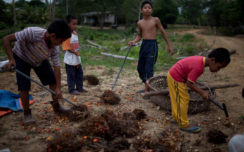 Young villagers work on oil palm fruit in Tanjung Labian in the area where suspected Philippine militants were holding off, near Lahad Datu on the Malaysian island of Borneo. Malaysia's government said on February 14 that its security forces have surrounded dozens of suspected Philippine militants in a remote area with a history of incursions by armed Filipino groups (AFP)