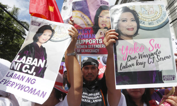 Sereno has been at loggerheads with President Rodrigo Duterte and has urged Filipinos to stand up to his authoritarian rule. She also has been speaking up for the respect of law and human rights, irking Duterte at a time he has led a brutal crackdown on illegal drugs that has left thousands of suspects dead.