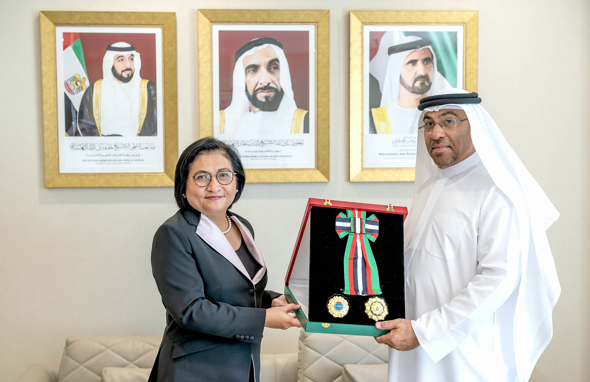 President His Highness Sheikh Mohamed bin Zayed Al Nahyan awarded Hjayceelyn M. Quintana, Ambassador of the Republic of the Philippines to the UAE, the Medal of Independence of the First Order in appreciation of her efforts during her tenure in the country, which contributed to the development of bilateral ties in various fields.