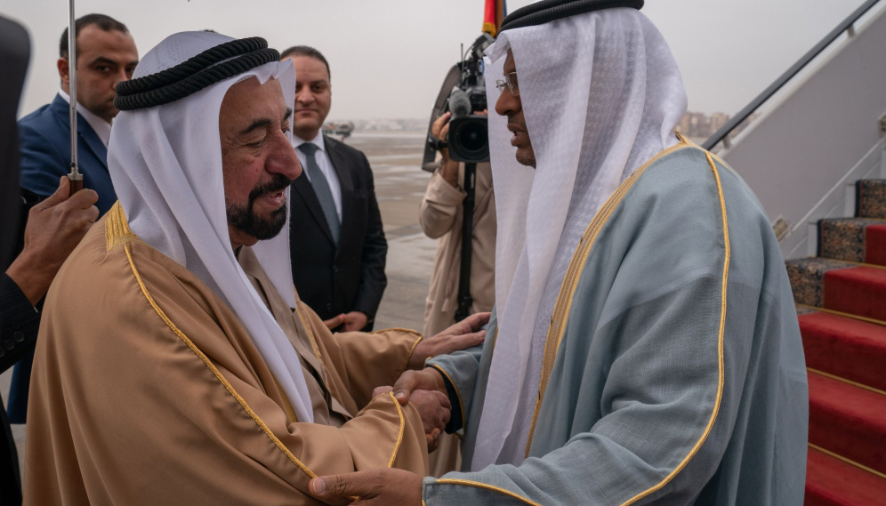 A number of sheikhs and officials were at the Cairo International Airport to bid farewell to the ruler of Sharjah, including: Juma Mubarak Al-Junaibi, UAE ambassador to Egypt, His Excellency Mohammed Obaid Al Zaabi, Head of Protocol and Hospitality Department, Ahmed bin Rakkad Al Ameri, Chairman of Sharjah Book Authority, and representatives of the Egyptian Presidency.