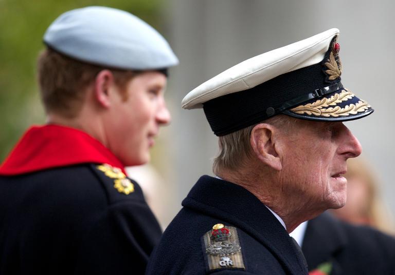 Prince Harry and his grandfather the Duke of Edinburgh paid their respects to Britain's fallen troops on Thursday at the annual opening of the Field of Remembrance, in their first joint engagement.