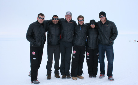 An undated handout photo issued by Walking with the Wounded (WWTW) shows (R-L) Britain's Prince Harry, Kate Philp, Guy Disney, Richard Eyre, Ibrar Ali and Duncan Slater of Team UK in the South Pole Allied Challenge 2013 expedition, as they arrive in Novo, Antarctica, for a charity trek to the South Pole. Prince Harry has arrived in Antarctica ahead of the charity trek involving wounded servicemen and women. The 29-year-old army attack helicopter pilot, other supporters and 12 injured personnel arrived at the Novo airbase in Antarctica, where they are expected to stay for the next couple of days to acclimatise to the Antarctic weather and make final preparations for the charity race to the planet's southernmost point, which is expected to take 16 days. RESTRICTED TO EDITORIAL USE - MANDATORY CREDIT " (AFP)