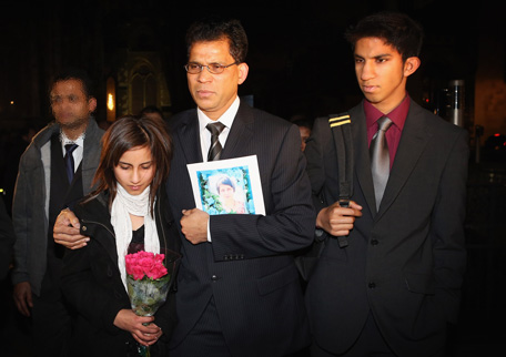 The daughter Lisha, husband Ben Barboza and son Junal of nurse Jacinta Saldanha arrive at the Houses of Parliament ahead of a meeting with MP Keith Vaz on December 10, 2012 in London, England. (GETTY)