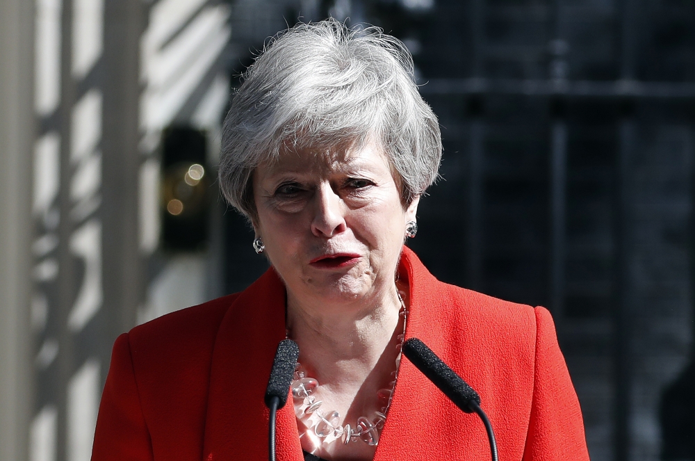 A tearful May announced her resignation on Friday, leaving the Brexit process for exiting the European Union in limbo and raising the risk of Britain crashing out of the bloc in a few months.