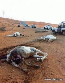 “The camels were crossing the road ahead of their owner’s car on their way to a camel beauty contest when the truck hit them…they were all killed,” Sharq daily said.