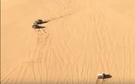 Two cars collided with each other during a stunt demonstration on sand in Saudi desert causing one of them to overturn many times.