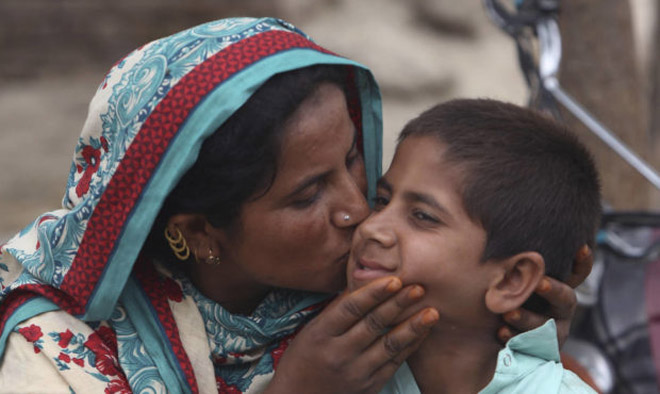 A Pakistani mother kisses her son Ali Raza, 10, infected with HIV in a village near Ratodero, a small town in southern province of Sindh in Pakistan. (AP)