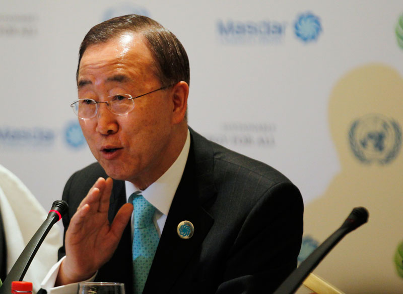 UN Secretary-General Ban Ki-moon speaks at a press conference during the World Future Energy Summit at the Abu Dhabi National Exhibition Centre on Monday. (Reuters)