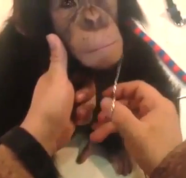 A YouTube film showed the monkey sitting calmly on the shaving seat as the barber carefully trimmed its beard and facial hair.
