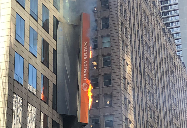 A New York Fire Department spokesman said there were no injuries and no damage to the building to which the billboard is attached.