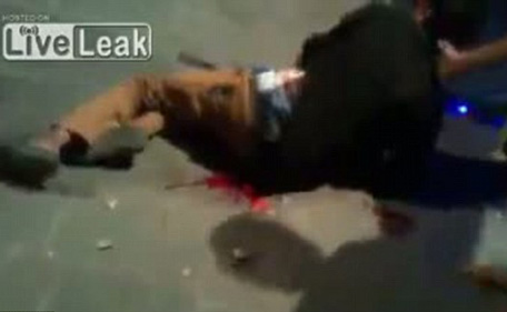After the gun goes off, killing a few men, mayhem breaks out and horrifc screams of guests can be heard on the clip. Some guests try to drag those who are critically injured off the ground even as they lay still in a pool of their own blood.