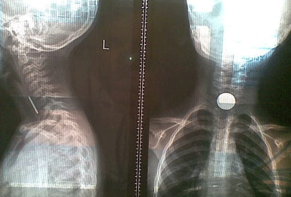 The child was rushed to hospital in the southern Najran town suffering from cough and breathing difficulties and images showed a coin was stuck in her pharynx.