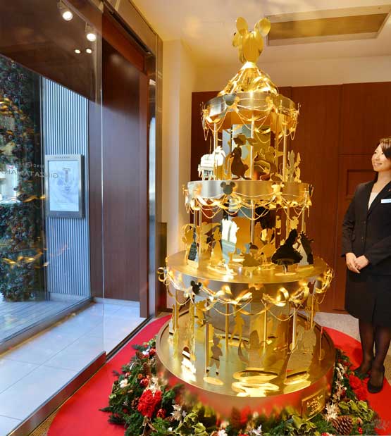 "Right now gold is over 4,400 yen per gram. We used pure gold and had an expert craftsman form each Disney character by hand," she said of the decoration, which took 10 craftsmen two months to complete.
