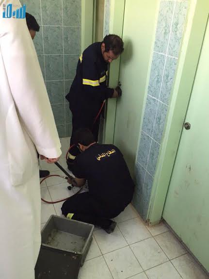 The management of a Saudi primary school had to call the civil defence after it failed to release a little pupil who was accidentally locked inside the toilet.