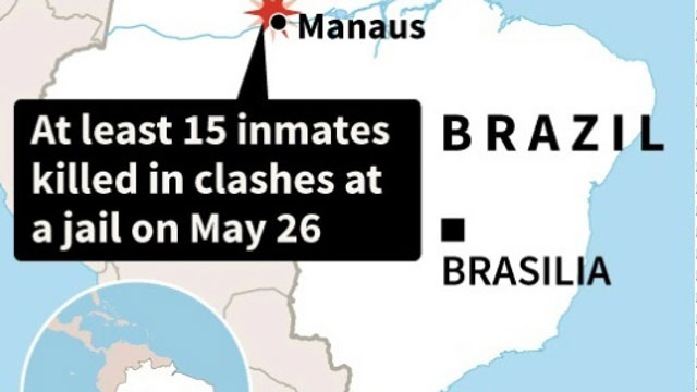 Clashes between inmates killed 15 people at a jail in Amazonas state in northern Brazil on Sunday, the regional prison authority said.