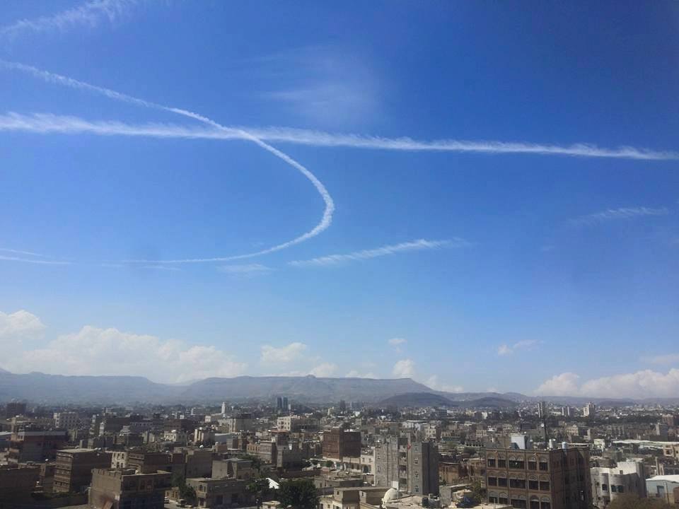 Masdar Online published pictures of the smoke lines which it said were posted on social media networks by Sanaa residents who witnessed the heavy sorties.