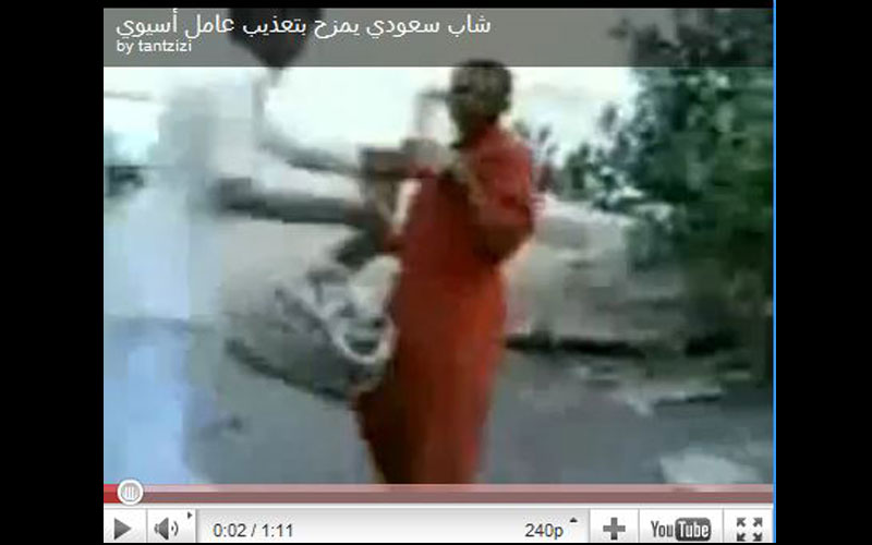 The Saudi man was shown in the 71-second film lashing the cleaner, who was clad in orange uniform and was in pain, said Sharq Arabic language newspaper, which published the film that was put on YouTube.