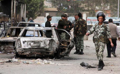 Members of the Egyptian Army keep guard near burnt vehicles in front of a police station, which was stormed into and set on fire by protesters, in the city of Suez January 28, 2013. Egyptian protesters defied a nighttime curfew in restive towns along the Suez Canal, attacking police stations and ignoring emergency rule imposed by Islamist President Mohamed Mursi to end days of clashes that have killed at least 52 people. (REUTERS)