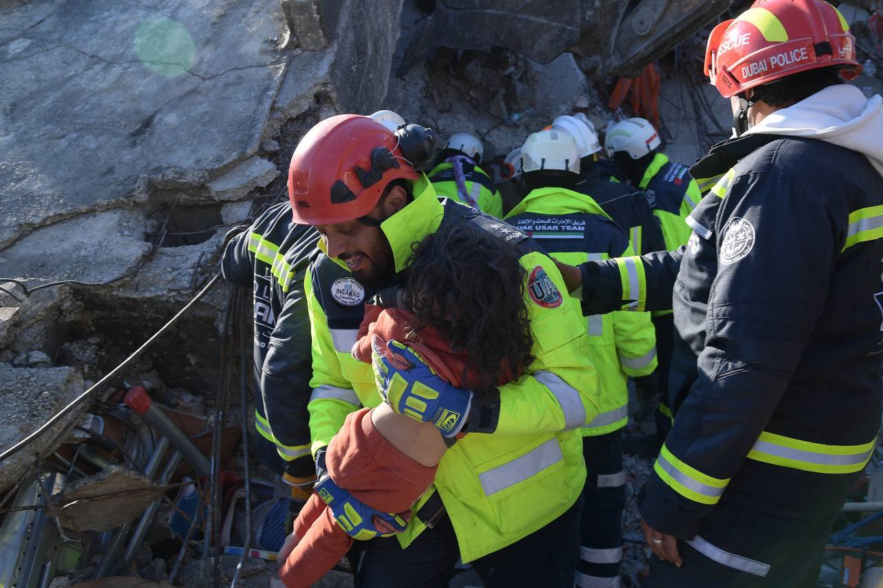 As part of the UAE's 'Gallant Knight/2' operation, the mother, son, and two daughters of a Syrian family were rescued from the ruins of their fallen home by Emirati search and rescue crew after the recent earthquake in Türkiye.