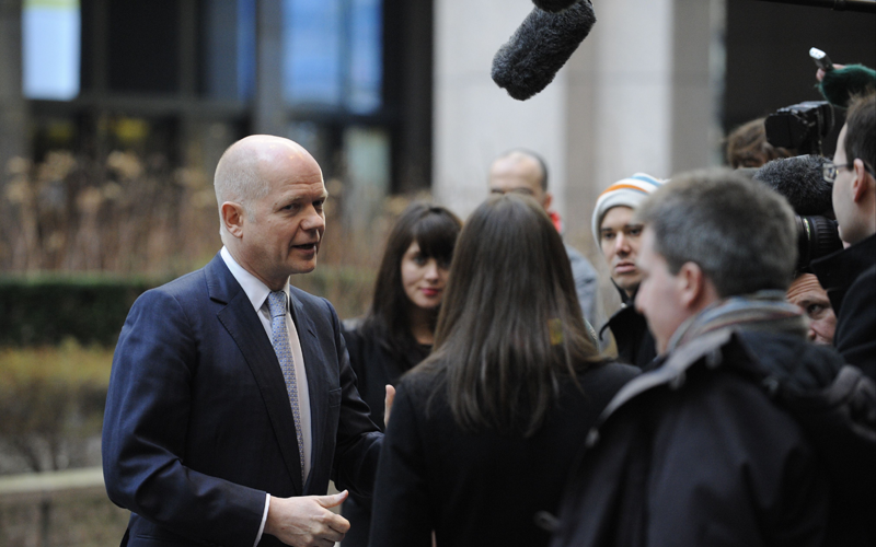 British Foreign Secretary of State for Foreign and Commonwealth Affairs, William Hague arrives before a Foreign Affairs Council at the EU Headquarters in Brussels. European foreign ministers discuss renewing sanctions on Syria and the possibly of lifting an arms embargo. Talks will also focus on the Mali crisis and Zimbabwe. (AFP)