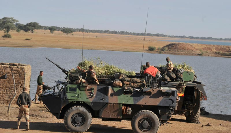 French soldiers stand guard next to the Niger river on Sunday January 20 near city of Markala, about 260km northeast of Bamako, capital of Mali. A spokesman for the French military operation codenamed Serval said on January 20 that French forces were advancing towards Mali's Islamist-held north after taking up positions in the towns of Niono and Sevare. (AFP)