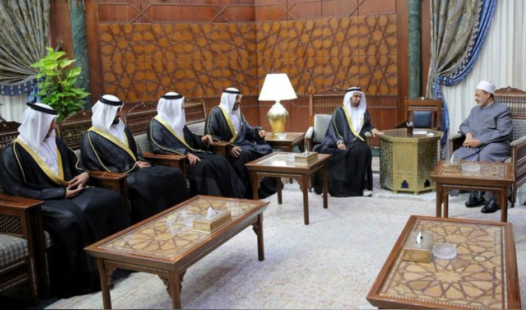 Dr. Ahmed Al Tayyeb, Grand Imam of Al Azhar, received a delegation from the UAE, which included Dr. Ali bin Rashid Al Nuaimi, Chairman of the World Council of Muslim Communities, Dr. Mohammed Matar Al Kaabi, Chairman of the General Authority of Islamic Affairs and Endowments, and Dr. Yousef Abdullah Al Obaidli, Chairman of the Sheikh Zayed Mosque Centre.