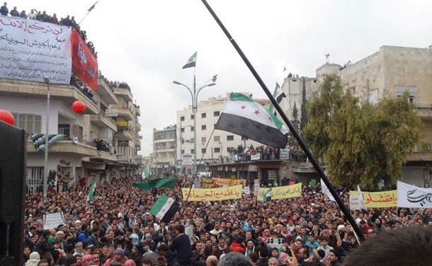 Demonstrators protest against Syria's President Bashar al-Assad after Friday prayers in Adlb January 13, 2012. Picture taken January 13, 2012. (REUTERS)