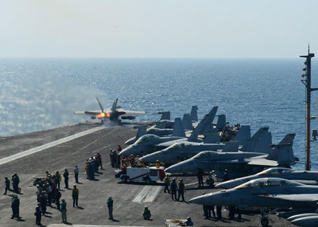 US Navy launches off the flight deck of the aircraft carrier USS George H.W. Bush during flight operatuions in the Arabian Gulf on June 17, 2014. (AFP)