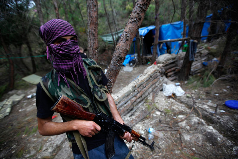A Free Syrian Army fighter mans an outpost on the Turkey-Syria border on April 15. (Reuters)