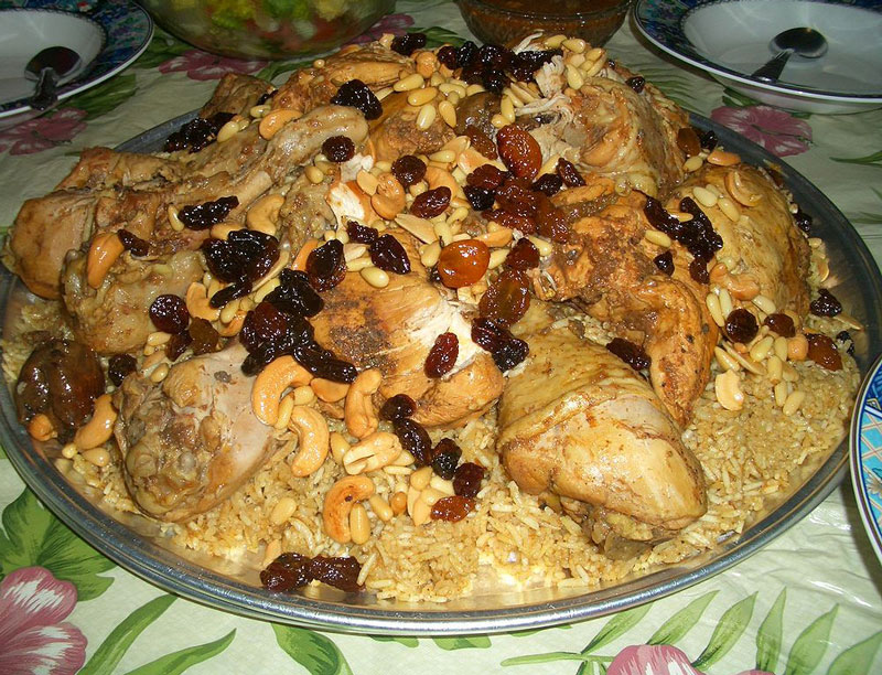Kabsa is one of the most popular dishes in Saudi Arabia and other Arab countries. It is made of rice mixed with fat or oil, chicken or meat, and much spice.