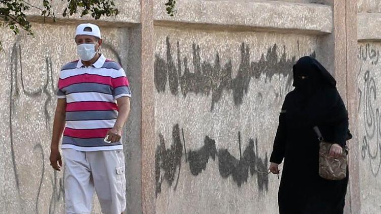 A Saudi man wears wears a mouth and nose mask as he walks in a street of the Red Sea coastal city of Jeddah. (AFP)