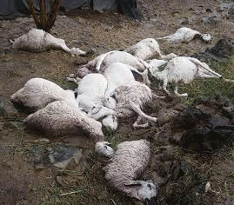 The 12 sheep were in their farm in the Southern Saudi town of Bisha when they were struck by the bolt on Tuesday, Sabq Arabic language daily said.
