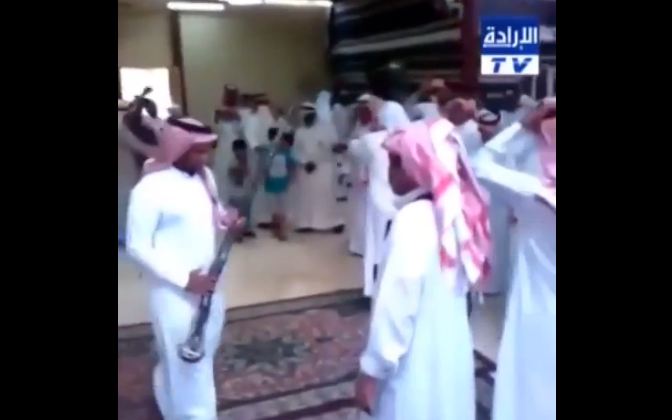 A YouTube film published in Ajel newspaper showed part of the ceiling fell down just after the man shot in the air in a packed wedding hall.