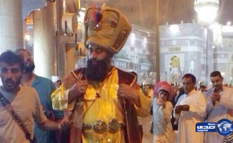 Security men in the sacred Saudi town of Makkah arrested a man wearing strange clothes inside the Grand Mosque, saying his costume distracted worshippers.