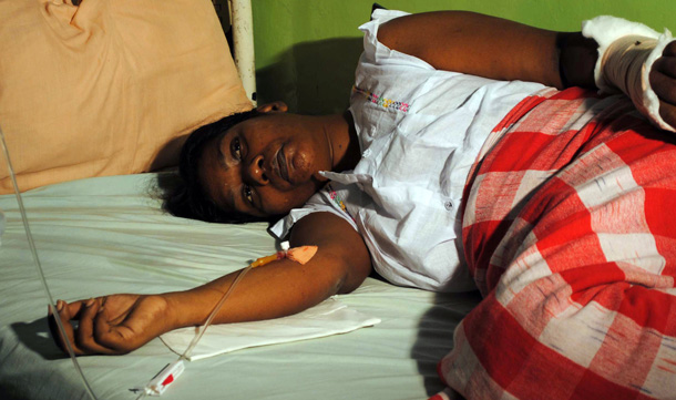 Sri Lankan housemaid V. R. Lechchami, 38, lies on her hospital bed in the northwestern town of Kurunegala. Lechchami, underwent surgery to remove nine out of the 14 nails inside her body. The doctor said the woman had told surgeons that her Kuwaiti employers drove the nails into her hands and left leg - some as long as 3.5 centimetres (1.5 inches) - when she asked for her salary after working for six months. (AFP)