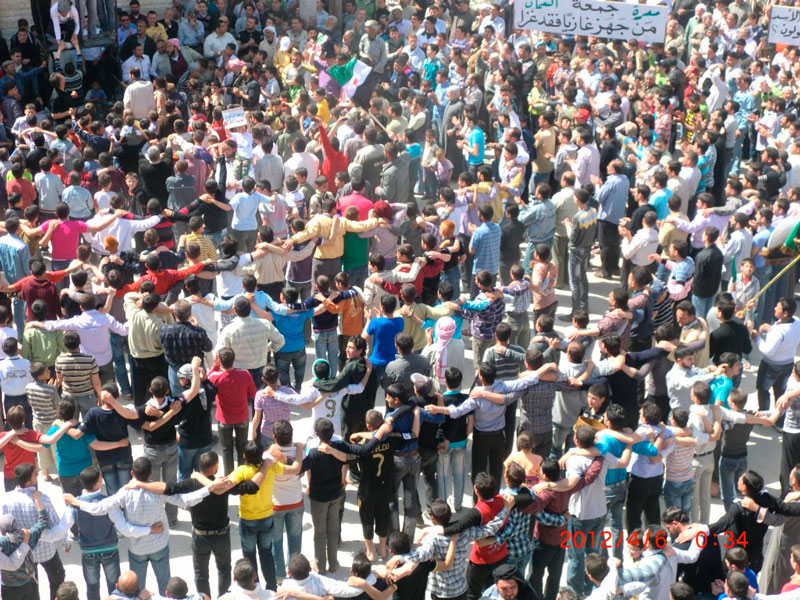 Demonstrators protest against Syria's President Bashar Al Assad in Marat Al Numan near the northern province of Idlib on April 6. (Reuters)