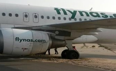 Airport officials said the Nas Air plane has just landed and taxied towards the terminal when it mistakenly entered a construction area despite warning boards installed there.