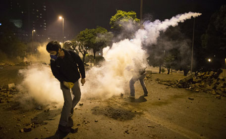 Protestors throw tear gas back at Turkish police during clashes with Turkish police near Turkish prime minister Recep Tayyip Erdogan office, between Taksim and Besiktas, early morning on June 4, 2013 in Istanbul, Turkey. The protests began initially over the fate of Taksim Gezi Park, one of the last significant green spaces in the center of the city. The heavy-handed viewed response of the police, Prime Minister Recep Tayyip Erdogan and his government's increasingly authoritarian agenda has broadened the rage of the clashes. (GETTY)