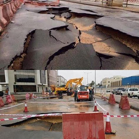 A road collapsed in Saudi capital Riyadh after two days of heavy rains last week but there were no immediate reports of casualties or injuries. Seasonal rains caused flooding in Saudi Arabia on Wednesday.