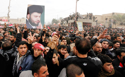 Moqtada Al-Sadr supporters cheer during his speech at Najaf province on January 8, 2011 (REUTERS)