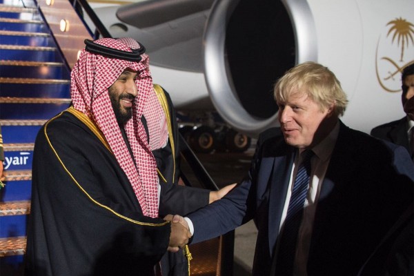 Upon his arrival, the Crown Prince was received by British Foreign Minister Boris Johnson, Prince Mohammed bin Nawaf bin Abdulaziz, Saudi Ambassador to the United Kingdom, and a number of officials.