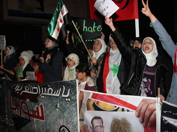 Syrians living in Jordan shout slogans against Syria's President Bashar Al-Assad, during a demonstration in front of the Syrian embassy in Amman November 17, 2011. (REUTERS)