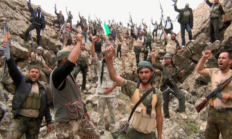 Free Syrian Army fighters shout "Allahu Akbar" near Deraa in this still image taken from a video obtained by Reuters on May 17. (Reuters)